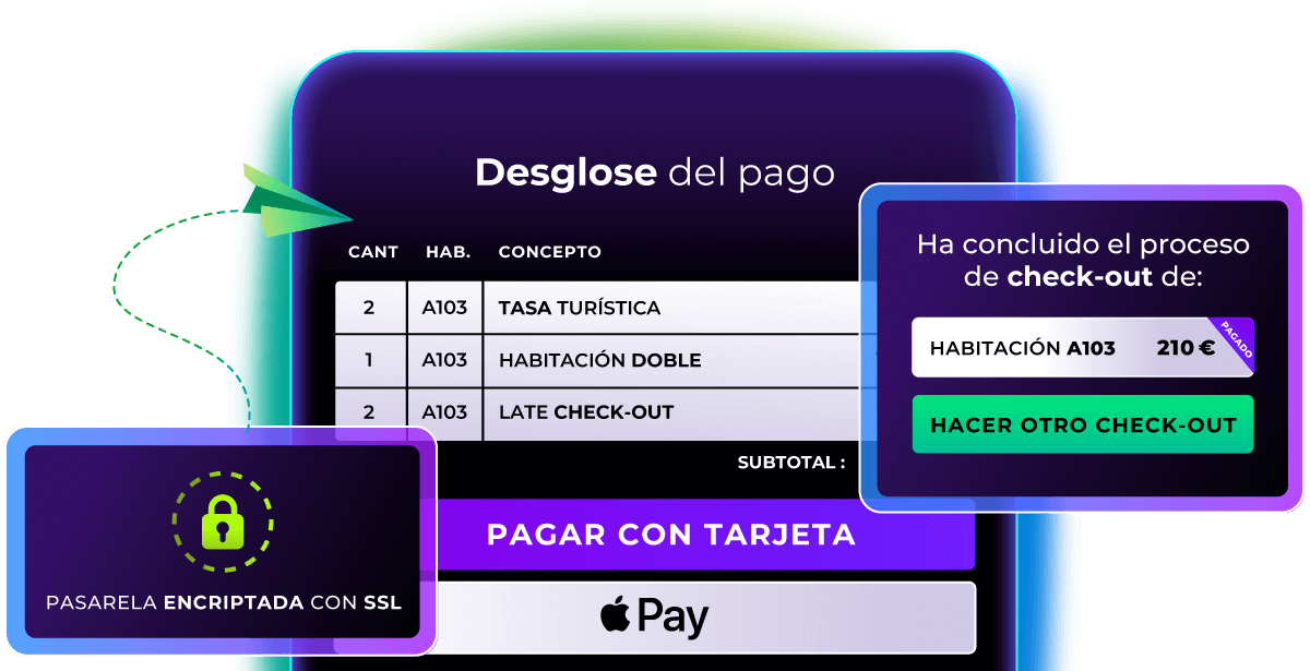 check-out, los pagos pendientes y la actualización del PMS en tiempo real.