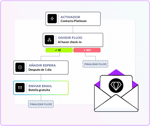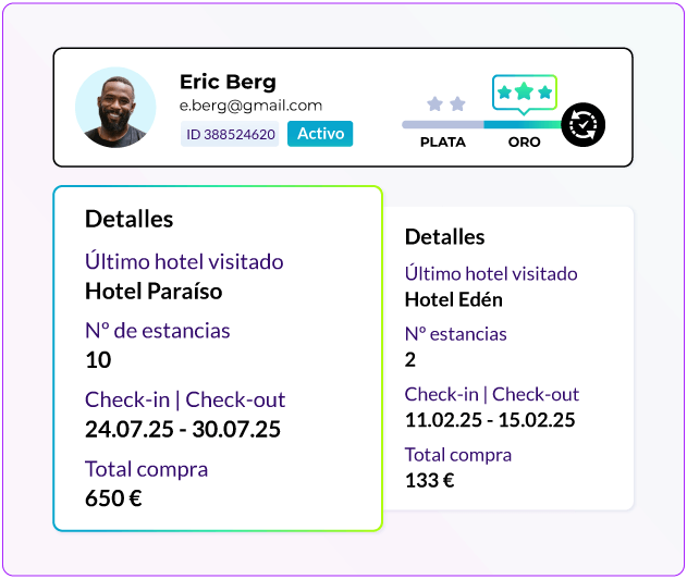 Los datos de los miembros del programa fluyen en tiempo real desde tu motor de reservas directamente al CRM, listos para su segmentación, nuevas campañas y automatizaciones.