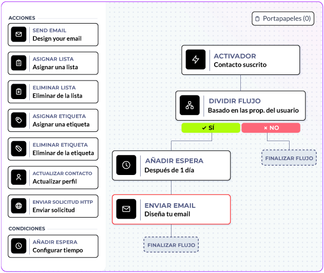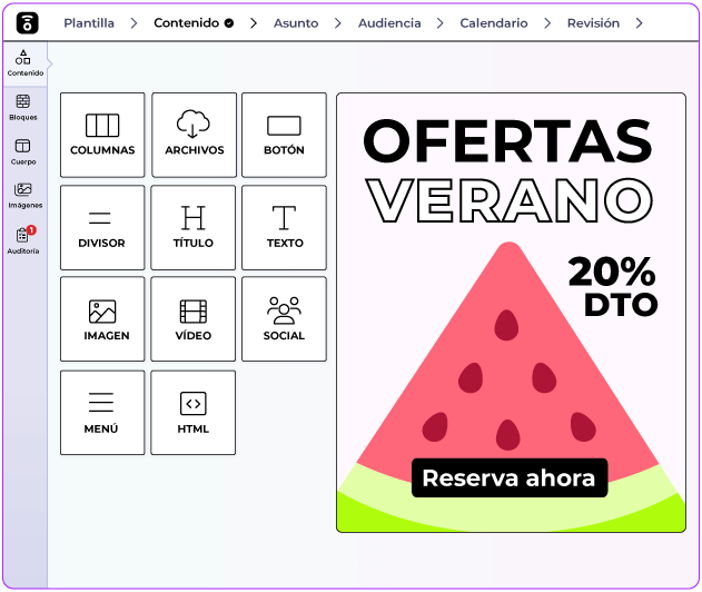 La IA integrada genera asuntos, textos e imágenes, acelerando la creación y mejorando la calidad de las campañas de marketing.