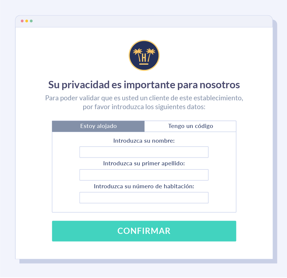 Introduciendo datos como apellido y número de habitación, se validará contra el PMS para verificar que dicho usuario/cliente se hospeda en el establecimiento. Para ello, es necesario que el huésped haya realizado el check-in.